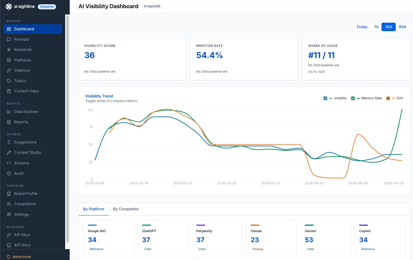 Monitoring your visibility across all of these platforms is the only way to know where you stand. This is exactly why tools like AI Sightline exist -- we track your brand's visibility across 6 AI platforms simultaneously, starting at $29.95/mo for 20 prompts across 4 platforms.