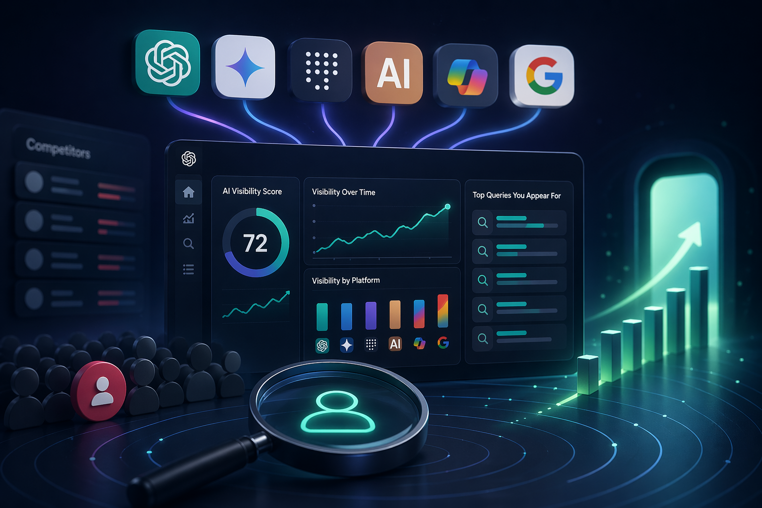 What is an AI visibility tool?An AI visibility tool monitors how your brand appears in responses from generative AI platforms like ChatGPT, Gemini, Perplexity, Claude, Copilot, and Google AI Overviews. It tracks whether your brand is mentioned, which competitors appear when you don't, and which sources AI platforms cite.
